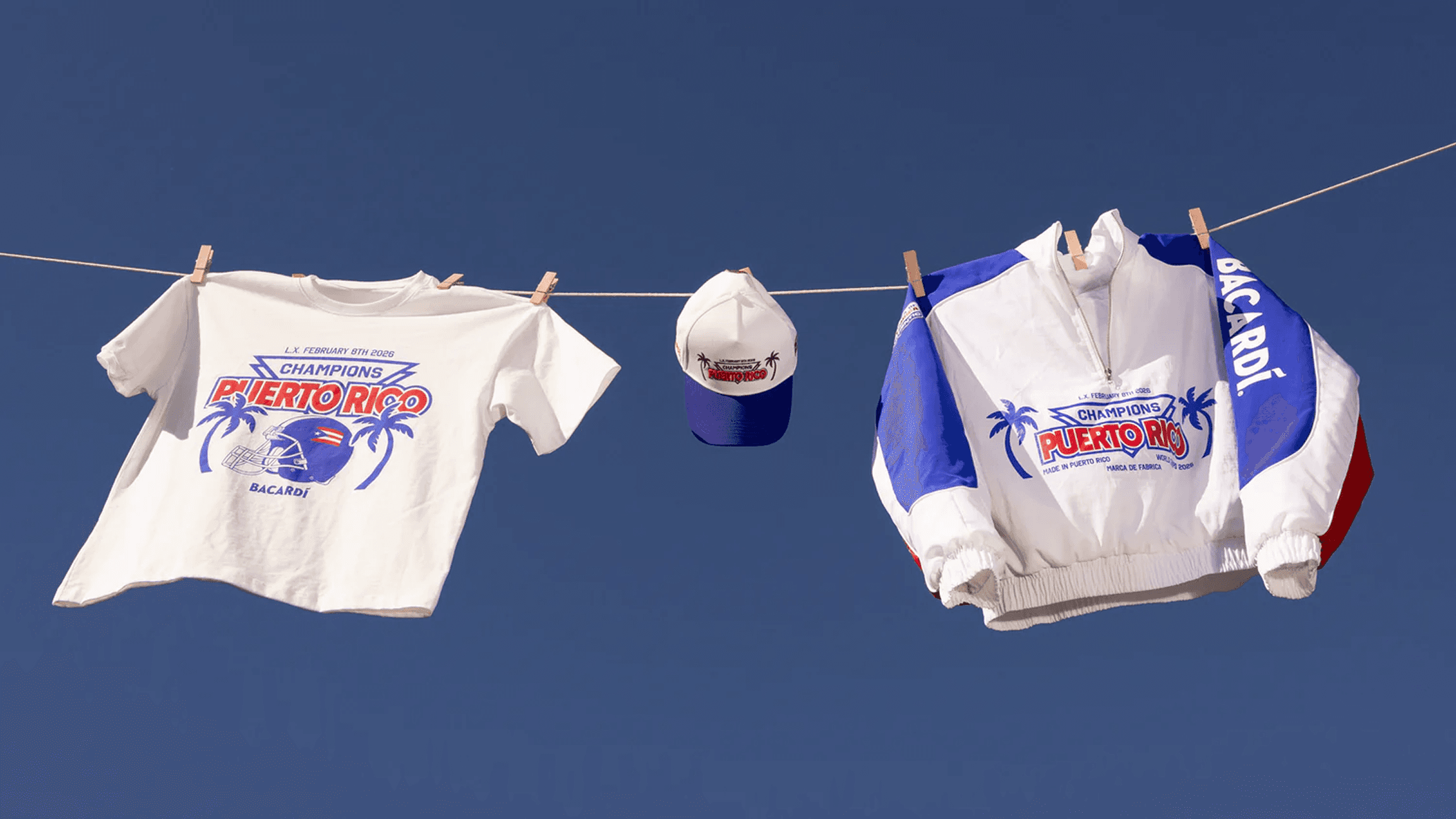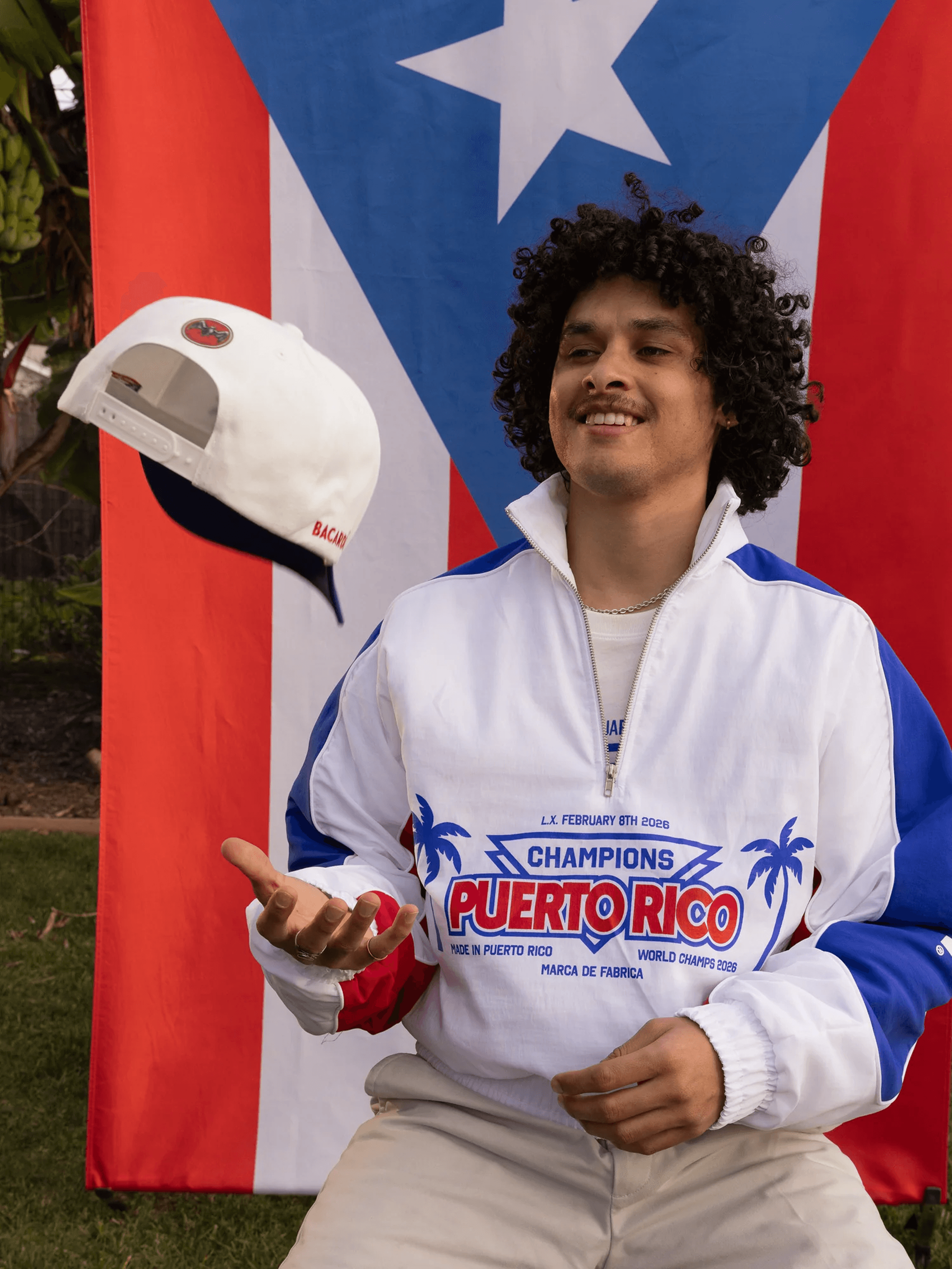 The capsule featured varsity-inspired windbreakers, heavyweight graphic tees, and structured snapbacks, each built around a bold, palm tree-forward graphic language that fused Bacardí's iconic identity with Puerto Rican pride. Every piece was designed for the stadium and the streets, with a color palette rooted in the island's flag and production-ready on an accelerated timeline to meet the moment.