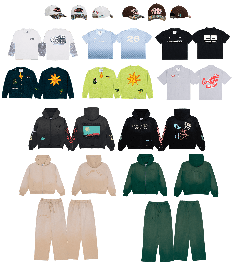 Coachella 2026 marked our largest cut-and-sew festival capsule to date. Goldenvoice came to Magnum Opus Agency for a fully custom apparel program - no blanks, no stock silhouettes. Every piece was developed from the ground up: pattern, sample, grade, bulk. We managed the full pipeline. Tech packs and patternmaking in-house, sampling and fit approvals with the Coachella creative team, then cut-and-sew production through our vetted overseas partners. Fabric sourcing, trims, labels, and finishing, all coordinated end-to-end so the drop hit the festival grounds and retail channels without compromise. The capsule spanned outerwear, tops, and headwear - each built to carry Coachella's 2026 identity while holding up to desert conditions and stage wear. Quality control and logistics were handled by our production team from sample approval through final delivery.